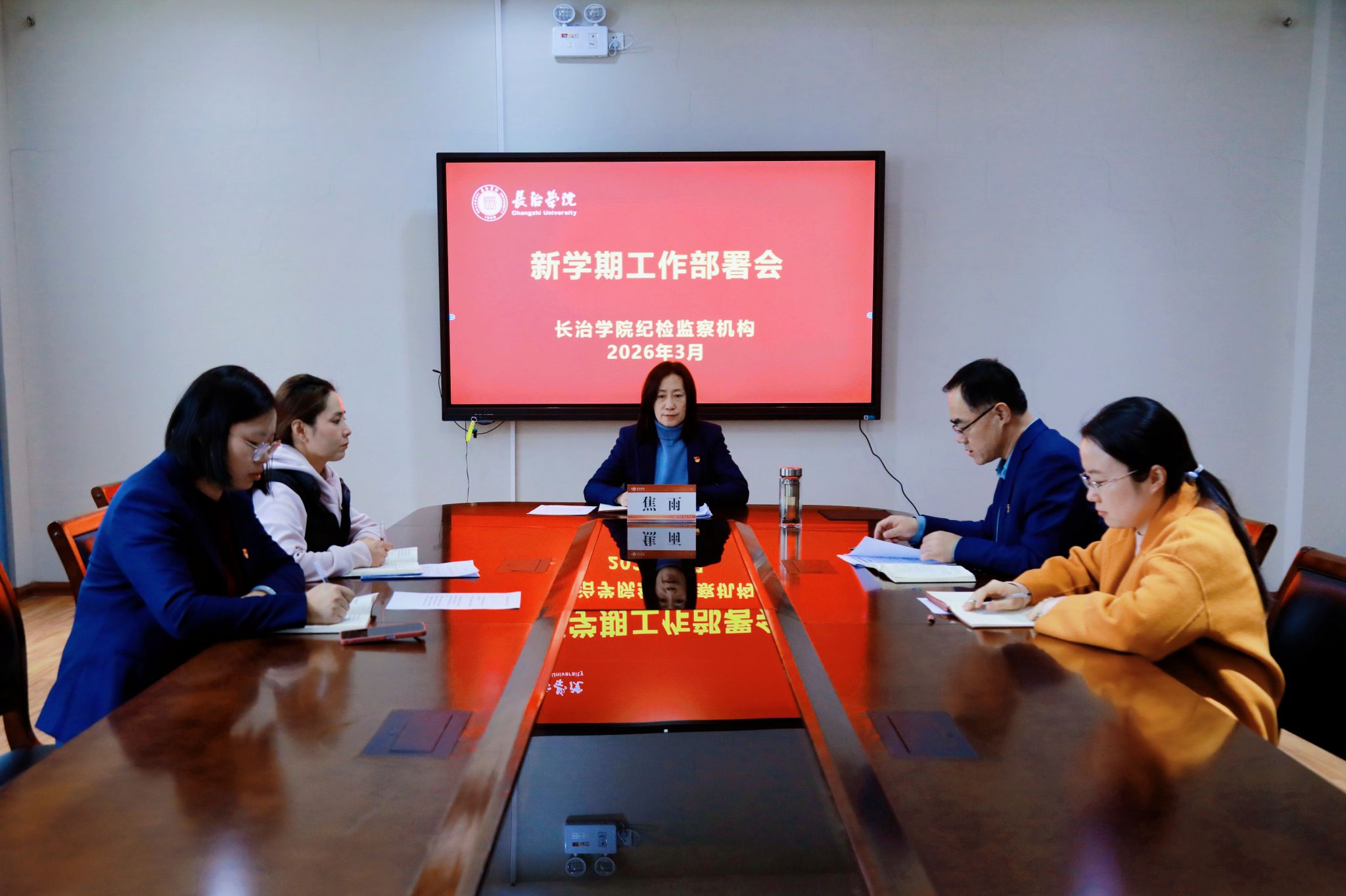 3月6日下午,校纪检监察机构召开2026年纪检监察工作部署会,传达学习2025年度省纪委监委派驻(派出)机构、省管企业和省管高校纪检监察机构主要负责人述职评议会议精神,并就贯彻落实会议精神、扎实开展2026年度纪检监察工作做出了具体安排部署。会议由校党委委员、纪委书记、监察专员焦雨主持,全体纪检监察干部参加。